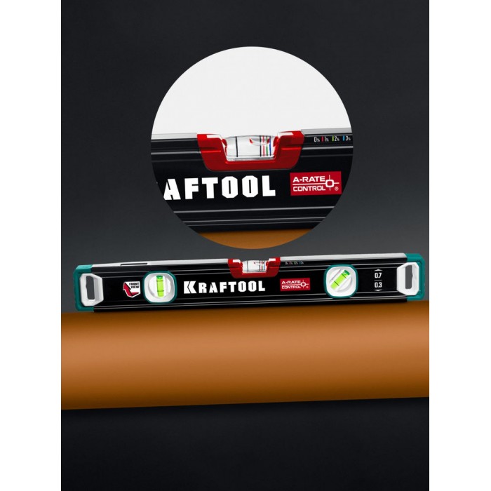 Сверхпрочный уровень A-RATE CONTROL, 400 мм, точность 0.3 мм/м, с инновационным зеркальным глазком KRAFTOOL 34986-40