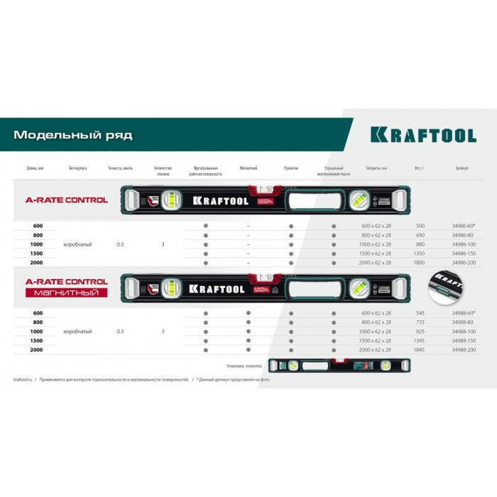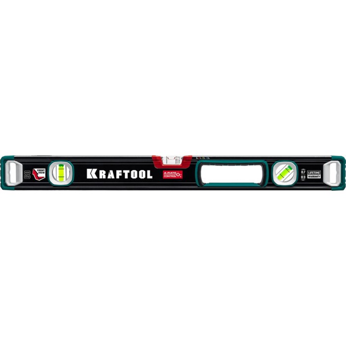 Сверхпрочный уровень A-RATE CONTROL, 600 мм, точность 0.3 мм/м, с инновационным зеркальным глазком KRAFTOOL 34986-60