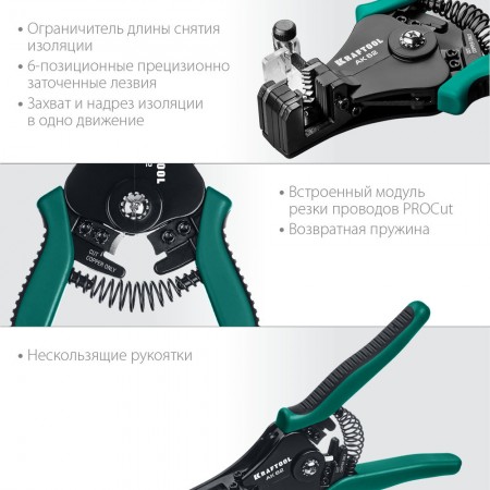 Инструменты для снятия изоляции KRAFTOOL, изготовлены из высококачественной стали с закалкой рабочих поверхностей, предназначены для профессионального применения. Обладают повышенным ресурсом, обеспечивают наивысшее качество электромонтажных работ.