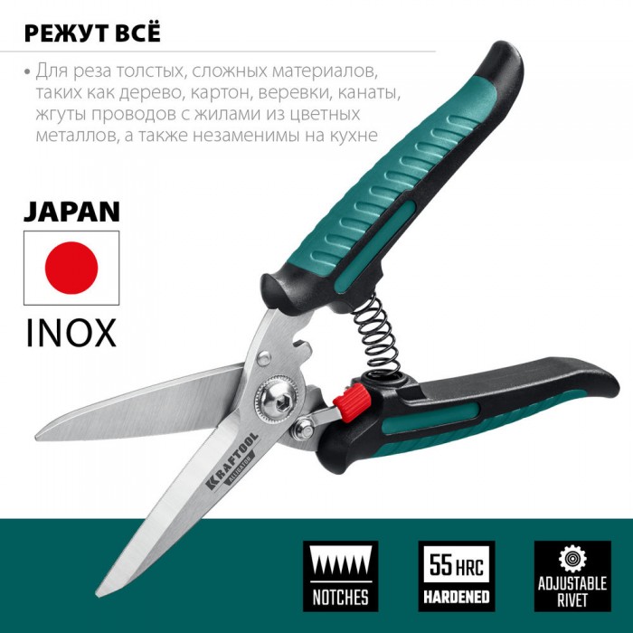 Многофункциональные прямые технические ножницы Alligator, 200 мм KRAFTOOL 23201