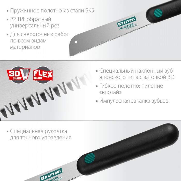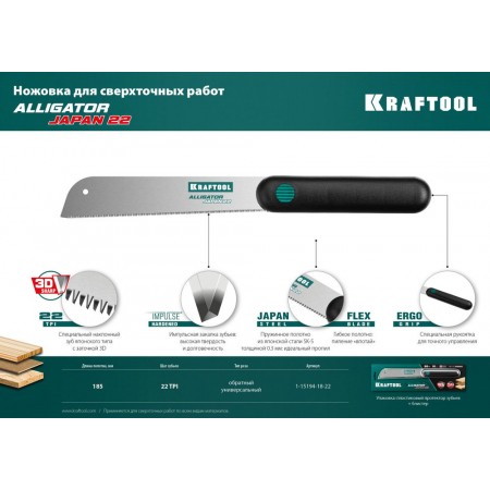 Ножовка по дереву Alligator Japan 22, 185 мм KRAFTOOL 1-15194-18-22