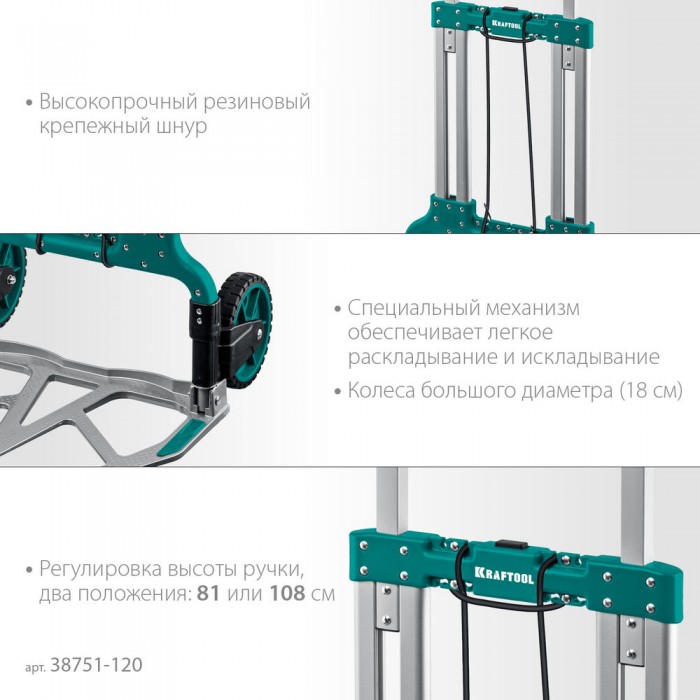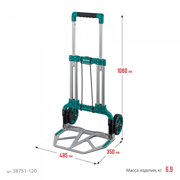 Тележка складная хозяйственная до 120кг, каркас и платформа из алюминия, платформа 48.5х35см, колеса d18см, вес 6.9кг ATLANT KRAFTOOL 38751-120