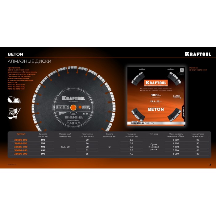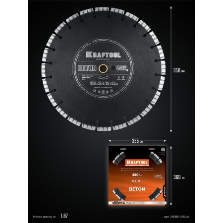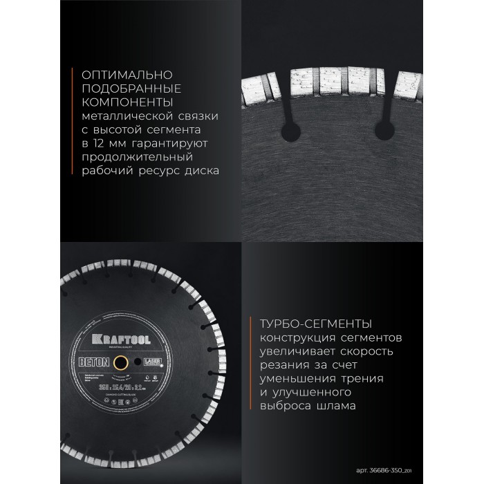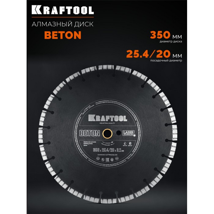 Алмазный диск BETON, 350 мм (25.4/20 мм, 12?3.2 мм) KRAFTOOL 36686-350_z01