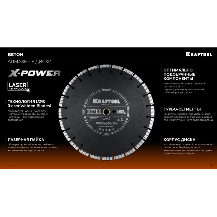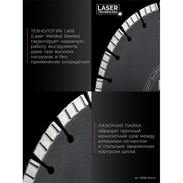 Технология LWB (Laser Welded Blades) гарантирует надежную работу инструмента даже при высоких нагрузках и без применения охлаждения