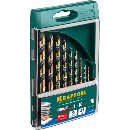 Набор сверл по металлу COBALT-8, 10 шт, (1–10 мм), сталь М42, HSS-Co(8%) KRAFTOOL 29656-H10