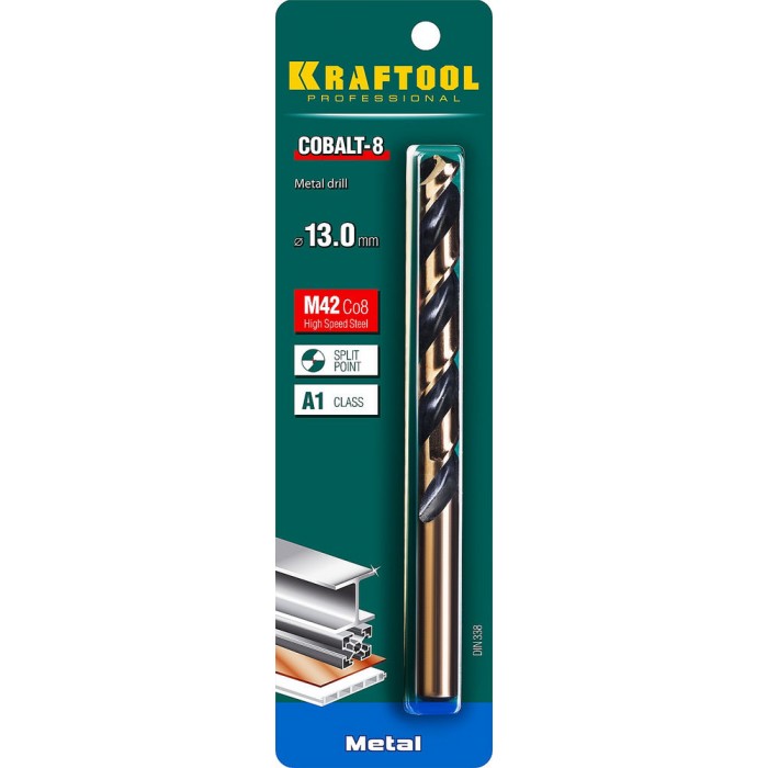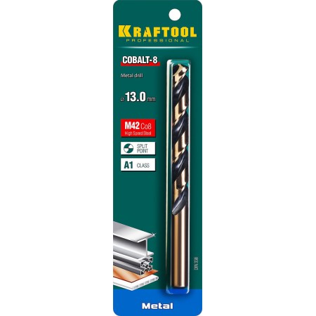 Сверло по металлу 13.0 х 151 мм сталь М42, HSS-Co(8%) COBALT-8 KRAFTOOL 29656-13