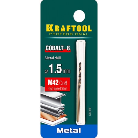 Сверло по металлу 1.5 х 43 мм сталь М42, HSS-Co(8%) COBALT-8 KRAFTOOL 29656-1.5