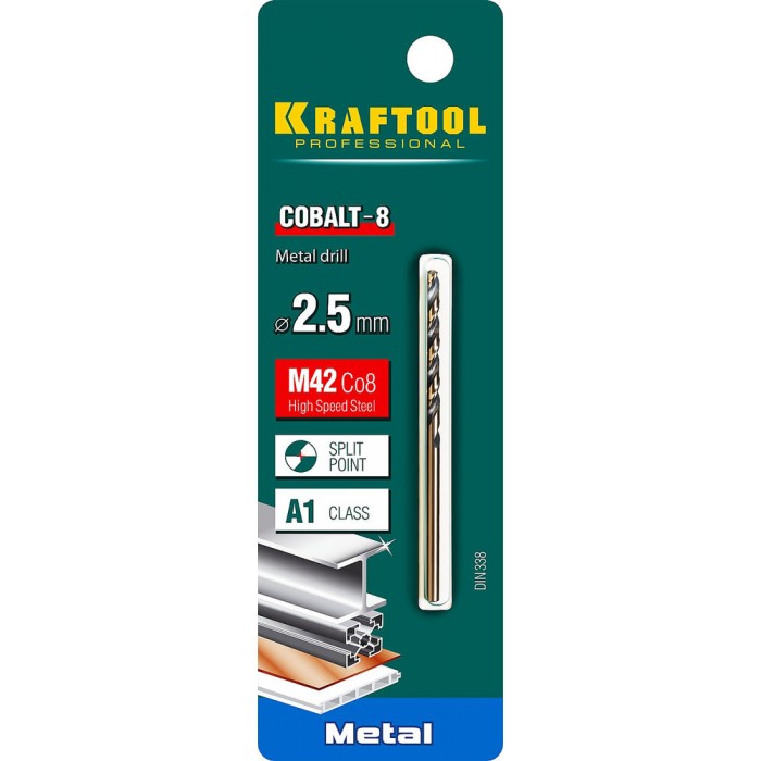 Сверло по металлу 2.5 х 57 мм сталь М42, HSS-Co(8%) COBALT-8 KRAFTOOL 29656-2.5