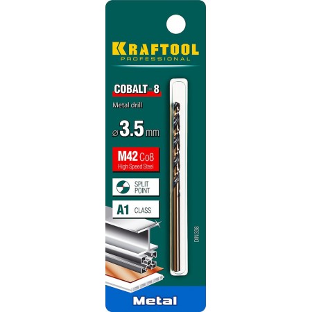 Сверло по металлу 3.5 х 70 мм сталь М42, HSS-Co(8%) COBALT-8 KRAFTOOL 29656-3.5