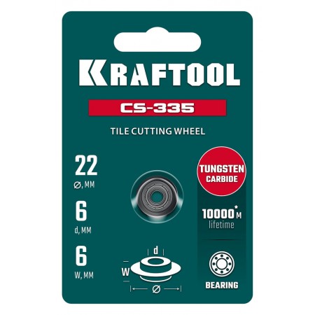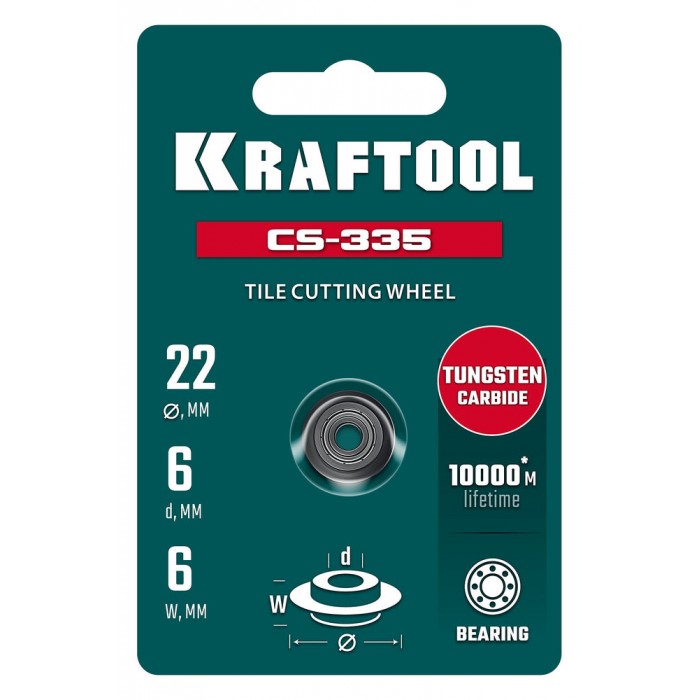 Режущий элемент для системы сухой резки имеет подшипник. Помогающий достигать плавного реза поверхности плитки. Материал режущего элемента, карбид вольфрама, имеет ресурс в 10000 м. Подхоит для замены режущего элемента для системы для сухой резки плитки арт.33250