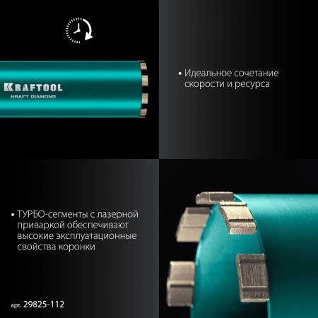 Алмазная коронка по железобетону DIAMOND, 112 мм (450 мм, 1 1/4", лазерная сварка сегментов) KRAFTOOL 29825-112