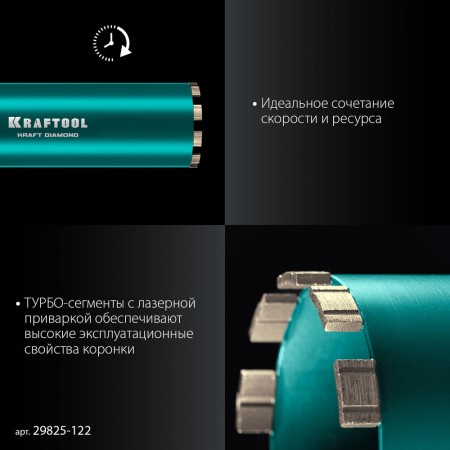 Алмазная коронка по железобетону DIAMOND, 122 мм (450 мм, 1 1/4", лазерная сварка сегментов) KRAFTOOL 29825-122