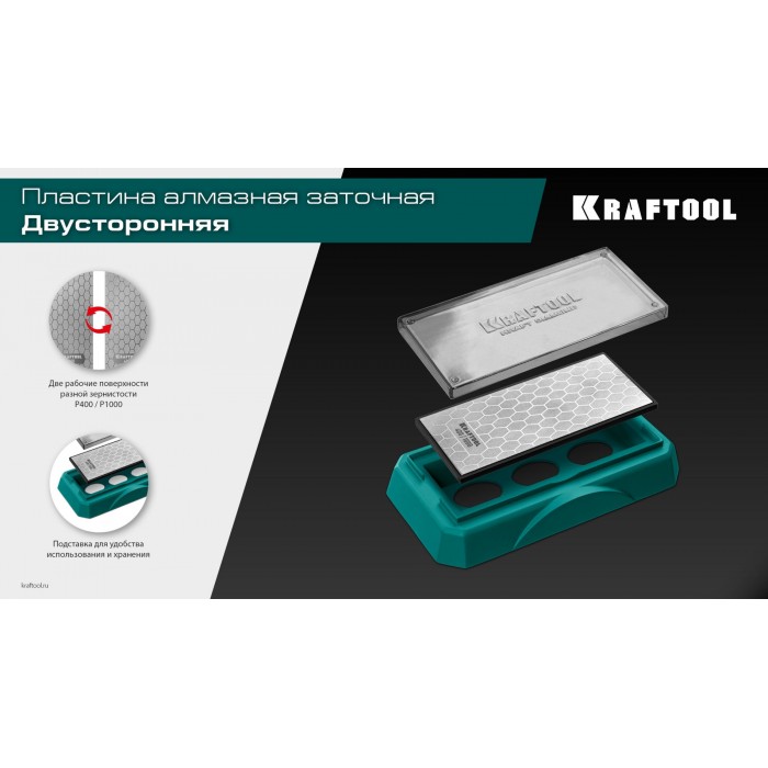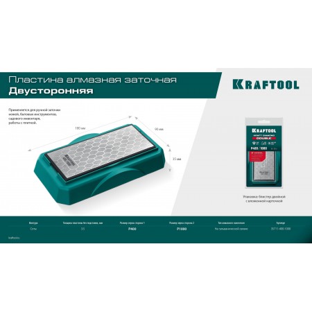KRAFTOOL DIAMOND DOUBLE Р400/1000, пластина алмазная заточная двухсторонняя (35711-400-1000)