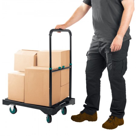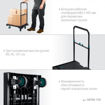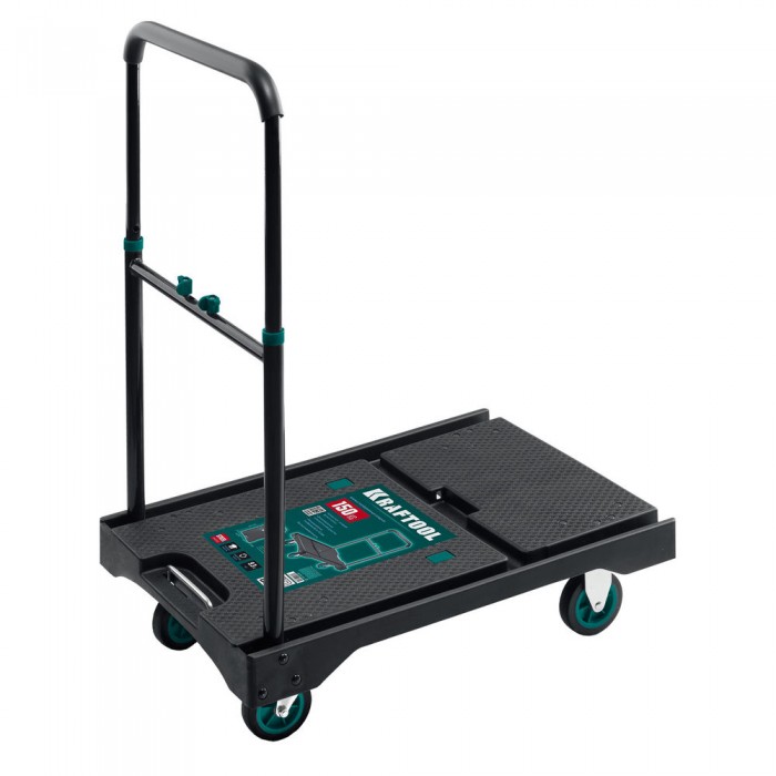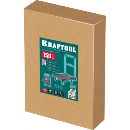 Платформенная тележка до 150 кг, платформа 68.0 х 49.5 см, складная рукоятка, складные колеса d 10 см, вес – 9.3 кг KRAFTOOL 38780-150