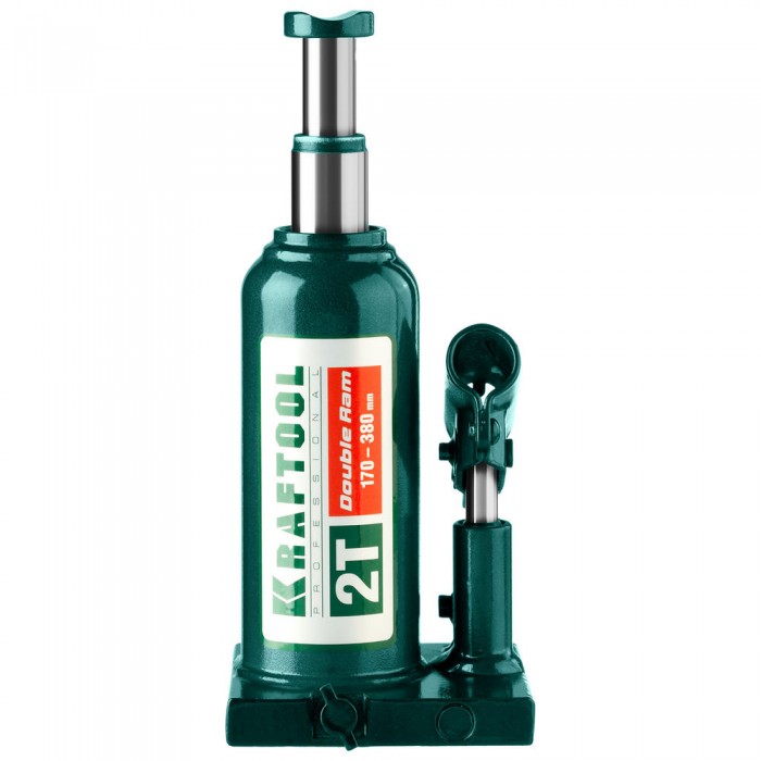Домкрат бутылочный двухштоковый 2 т, 170 - 380 мм с увеличенным подъемом DOUBLE RAM KRAFTOOL 43463-2