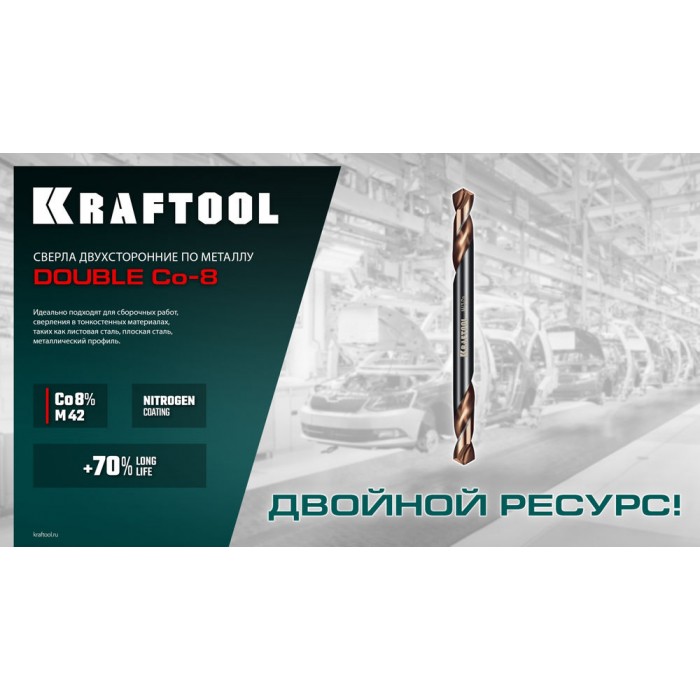Сверло двухстороннее 4?55 мм по металлу DOUBLE Сo-8 сталь M42+8%Co класс А KRAFTOOL 29654-4.0-10