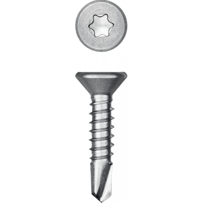 Саморезы с потайной головкой и сверлом изготовлены в соответствии со стандартом DIN7504P из нержавеющего прутка. Легирование никелем, хромом и марганцем полностью сохраняет аустенитную структуру кристаллической решетки, благодаря чему нержавеющие саморезы обладают хорошей прочностью и пластичностью, немагнитными свойствами и невысокой электропроводностью. Саморезы легко вкручиваются обычным шуруповертом или отверткой.