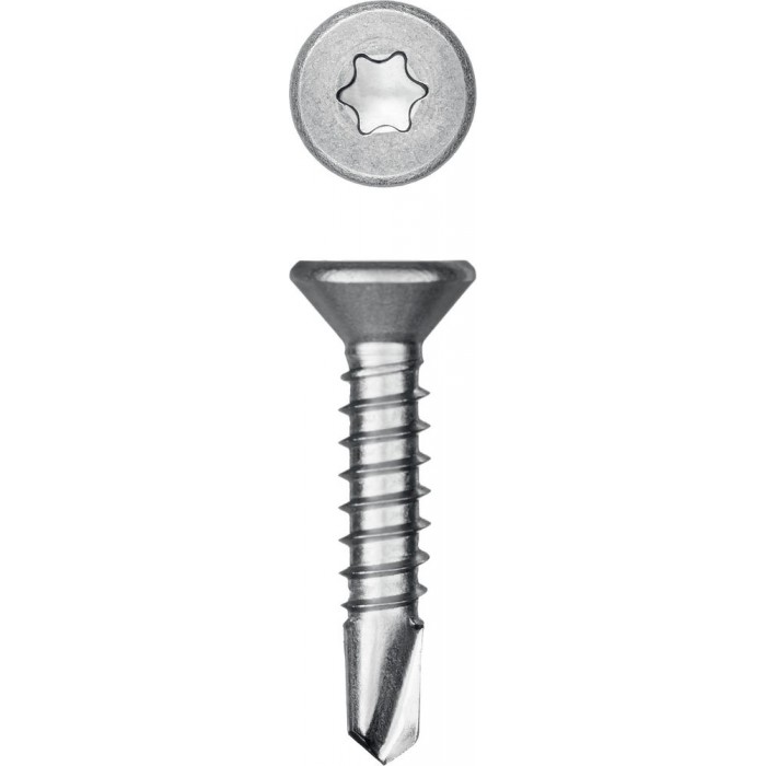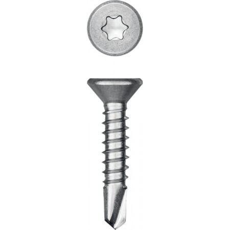 Саморезы с потайной головкой и сверлом изготовлены в соответствии со стандартом DIN7504P из нержавеющего прутка. Легирование никелем, хромом и марганцем полностью сохраняет аустенитную структуру кристаллической решетки, благодаря чему нержавеющие саморезы обладают хорошей прочностью и пластичностью, немагнитными свойствами и невысокой электропроводностью. Саморезы легко вкручиваются обычным шуруповертом или отверткой.