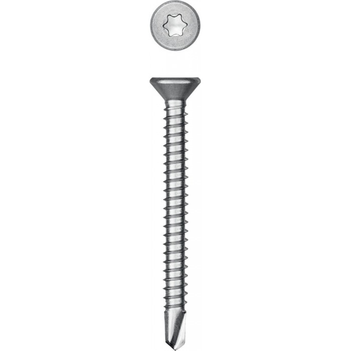 Саморезы с потайной головкой и сверлом изготовлены в соответствии со стандартом DIN7504P из нержавеющего прутка. Легирование никелем, хромом и марганцем полностью сохраняет аустенитную структуру кристаллической решетки, благодаря чему нержавеющие саморезы обладают хорошей прочностью и пластичностью, немагнитными свойствами и невысокой электропроводностью. Саморезы легко вкручиваются обычным шуруповертом или отверткой.