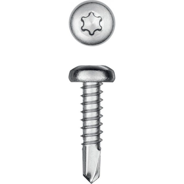 Саморезы с полукруглой головкой и сверлом изготовлены в соответствии со стандартом DIN7504N из нержавеющего прутка. Легирование никелем, хромом и марганцем полностью сохраняет аустенитную структуру кристаллической решетки, благодаря чему нержавеющие саморезы обладают хорошей прочностью и пластичностью, немагнитными свойствами и невысокой электропроводностью. Саморезы легко вкручиваются обычным шуруповертом или отверткой.