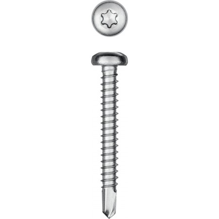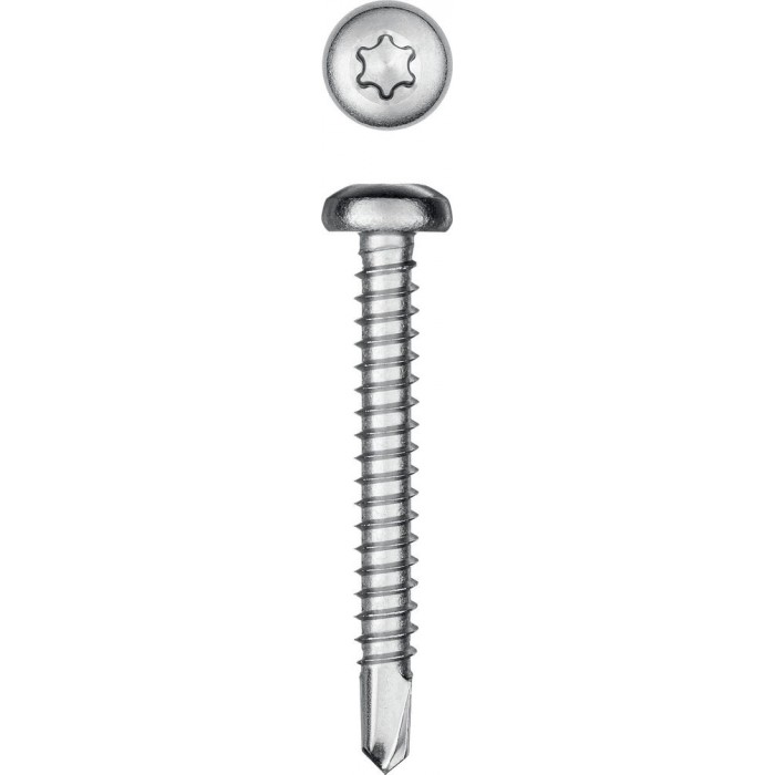 Саморезы с полукруглой головкой и сверлом изготовлены в соответствии со стандартом DIN7504N из нержавеющего прутка. Легирование никелем, хромом и марганцем полностью сохраняет аустенитную структуру кристаллической решетки, благодаря чему нержавеющие саморезы обладают хорошей прочностью и пластичностью, немагнитными свойствами и невысокой электропроводностью. Саморезы легко вкручиваются обычным шуруповертом или отверткой.