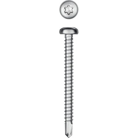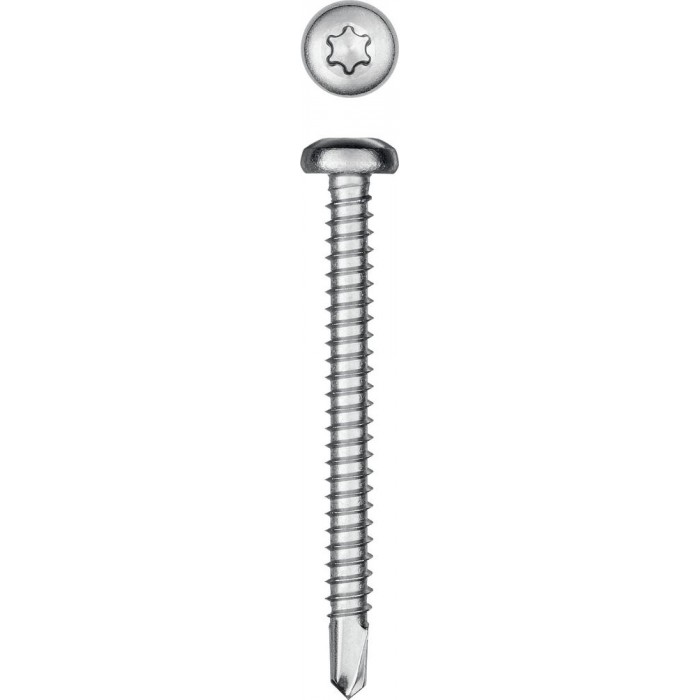 Саморезы с полукруглой головкой и сверлом изготовлены в соответствии со стандартом DIN7504N из нержавеющего прутка. Легирование никелем, хромом и марганцем полностью сохраняет аустенитную структуру кристаллической решетки, благодаря чему нержавеющие саморезы обладают хорошей прочностью и пластичностью, немагнитными свойствами и невысокой электропроводностью. Саморезы легко вкручиваются обычным шуруповертом или отверткой.