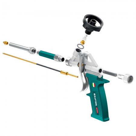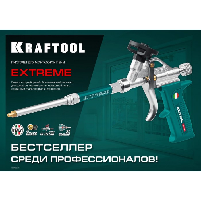 Бестселлер среди Профессионалов! Полностью разборный обслуживаемый пистолет для монтажной пены KRAFTOOL EXTREME для сверхточного нанесения монтажной пены. Высокое качество изготовления и инновационная конструкция обеспечивают герметичность и длительный срок службы. Тефлоновое покрытие держателя. Полностью латунная конструкция: корпус, ствол, сопло, держатель, игольчатый клапан, регулятор. Тройная изоляция карбоно-графитными прокладками. Зеркальная полировка внутренней поверхности.