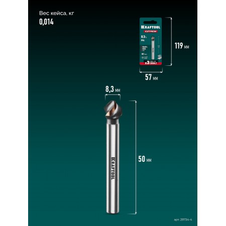KRAFTOOL EXTREME Со5-А, d 8.3х6х50 мм, Z3, 90°, сталь M35, U-образная спираль, зенковка (29734-4)