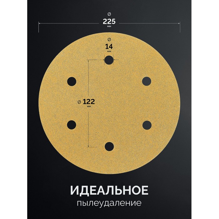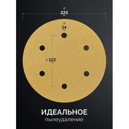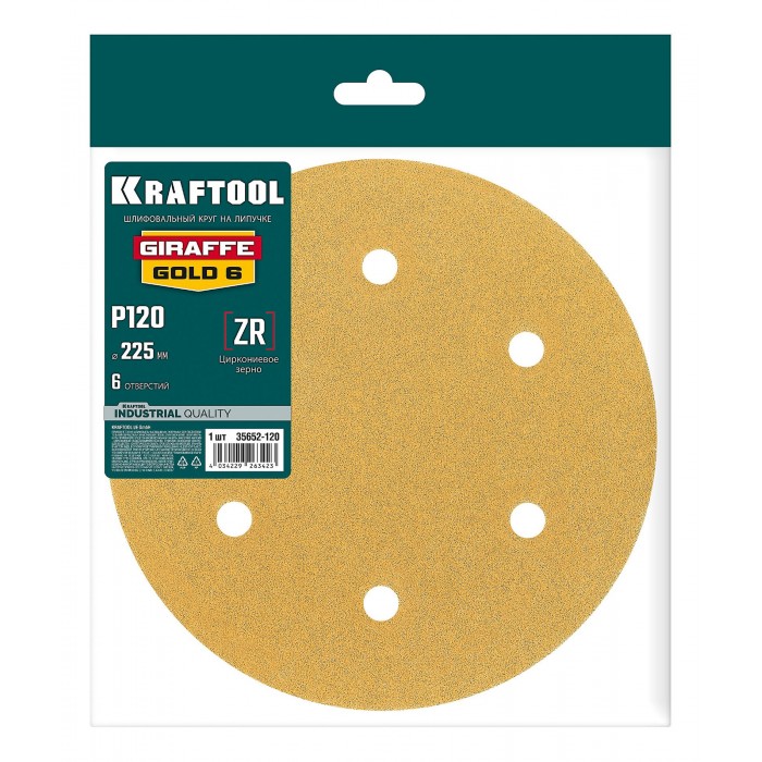 KRAFTOOL Giraffe GOLD-6 225 мм, Р120, шлифовальный круг на липучке, 6 отв. (35652-120)