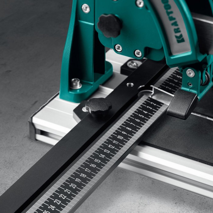 Профессиональный плиткорез GRAND подходит для резки любой плитки, толщиной до 16мм. Его режущий элемент рассчитан на 10 километров реза без замены. Плавный ход каретке обеспечивают 10 подшипников, скрытых в корпусе. Цельный стальной рельс прямоугольного сечения позволяет каретке надежно перемещаться, не застревая даже при самых сильных нагрузках. Боковые опоры можно разместить в любом удобном для Вас положении, а линейка с угломером позволят сделать самый точный рез. Алюминиевое основание облегчает конструкцию, а фиксатор каретки позволяет безопасно перевозить плиткорез.