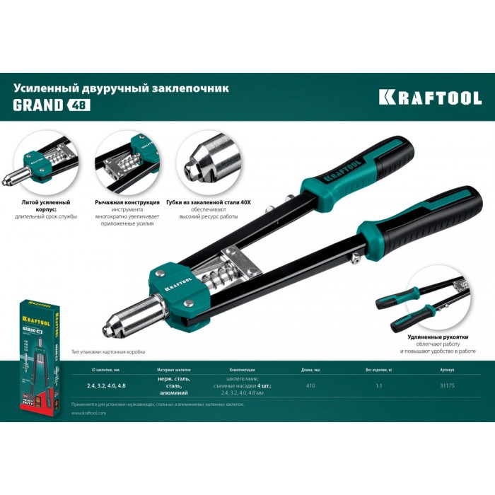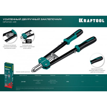 Усиленный двуручный заклёпочник GRAND-48, 2.4 - 4.8 мм, 410 мм KRAFTOOL 31175