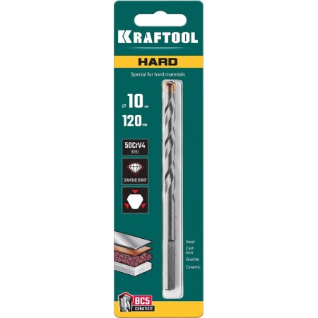 Сверло специальное по твёрдым материалам Hard, 10 х 120 мм, тв.сплав ВС5 KRAFTOOL 29177-120-10