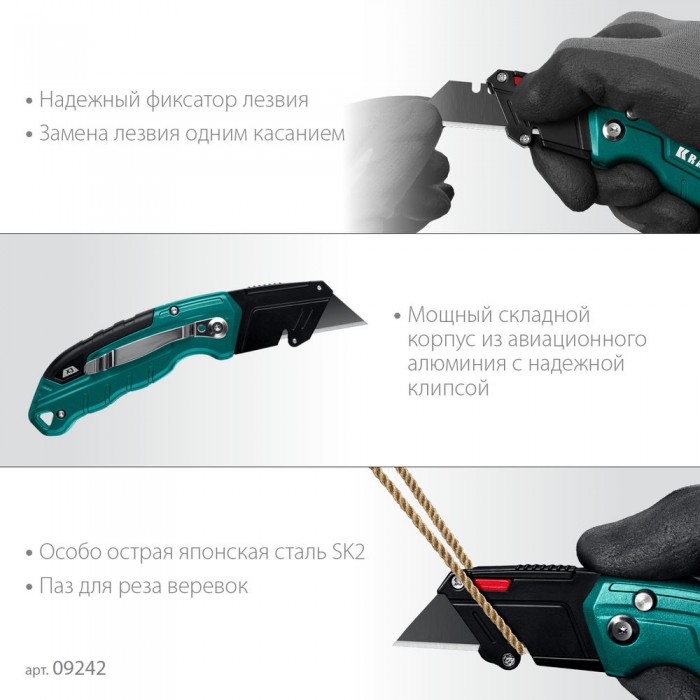 Нож компактный складной с трапециевидным лезвием, тип А24 Helfer KRAFTOOL 09242