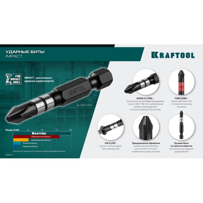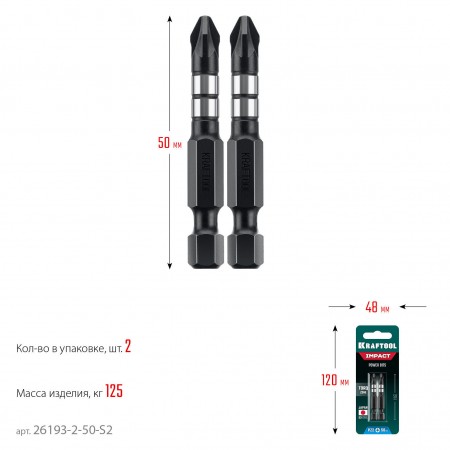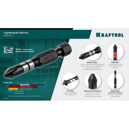 KRAFTOOL Impact PZ 2, 50 мм, 2 шт, ударные биты (26193-2-50-S2)