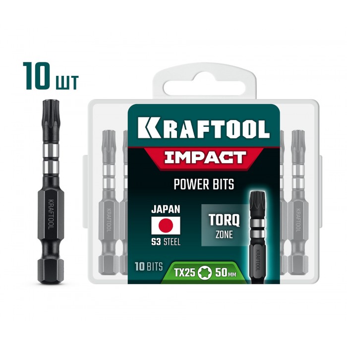 KRAFTOOL Impact TX 25, 50 мм, 10 шт, ударные биты (26195-25-50-S10)