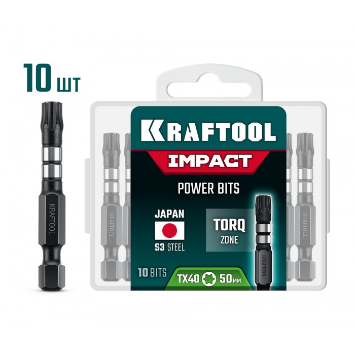KRAFTOOL Impact TX 40, 50 мм, 10 шт, ударные биты (26195-40-50-S10)