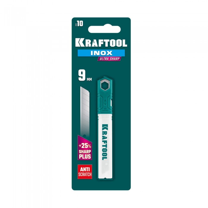 Нержавеющие сегментированные лезвия INOX, 9 мм, 10 шт KRAFTOOL 09608-09-S10