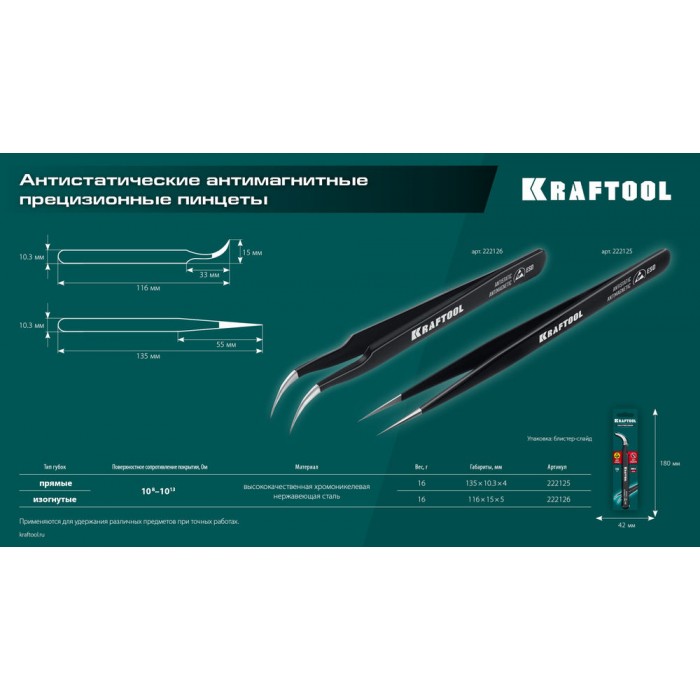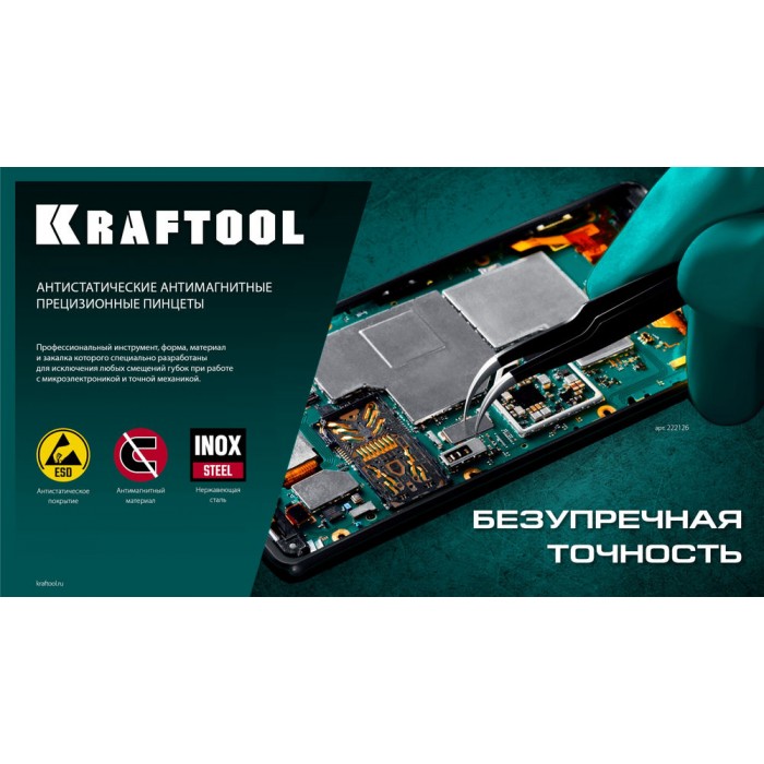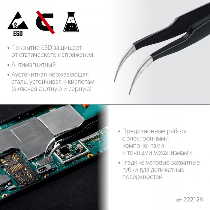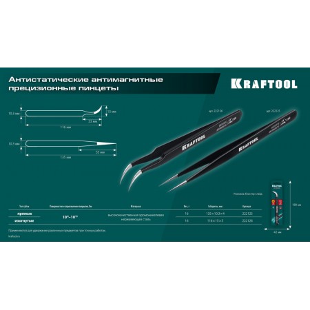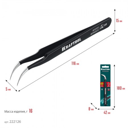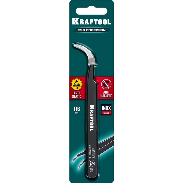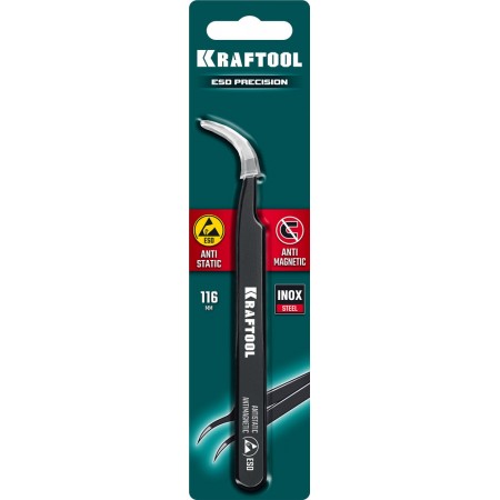 Антистатический антимагнитный прецизионный пинцет изогнутый, 116 мм KRAFTOOL 222126