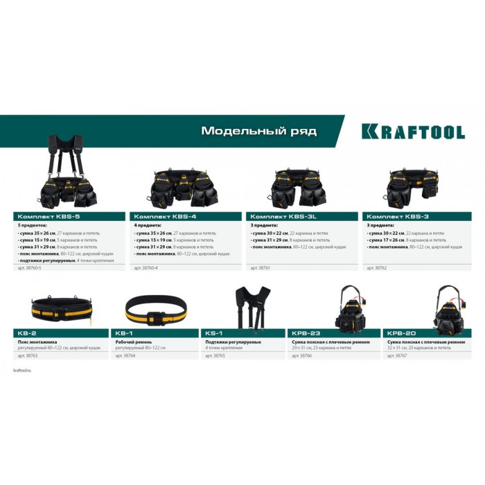 Оптимизирован для всех сумок KRAFTOOL KRAFTBUILT с системой быстрого крепежа