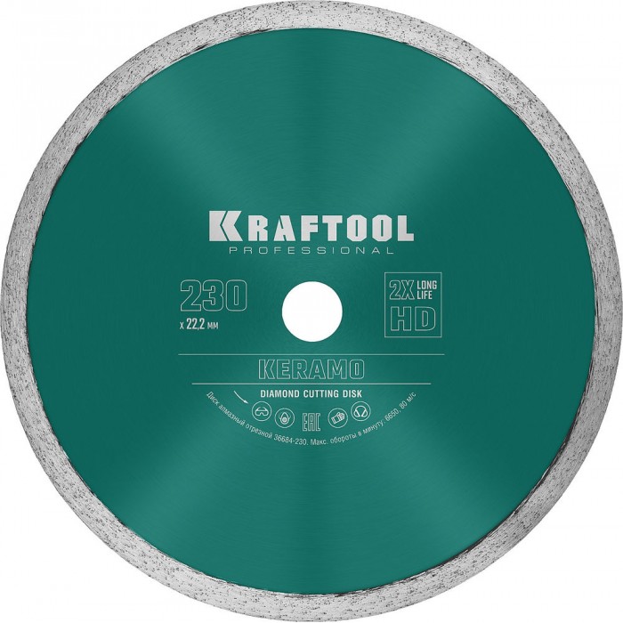 Сплошной алмазный диск KERAMO, 230 мм, (22.2 мм, 10 х 2.2 мм) KRAFTOOL 36684-230