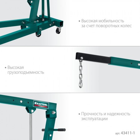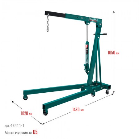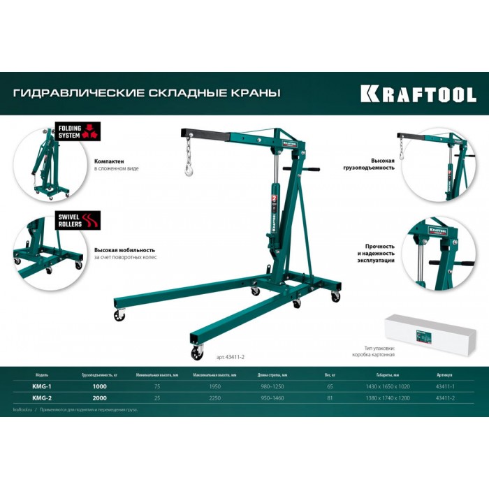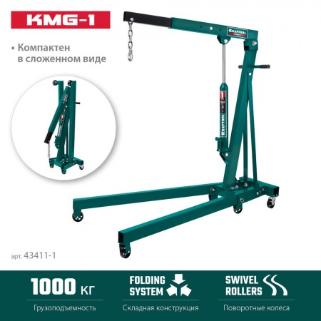 Складной гидравлический кран KMG-1, 1 т, 75 - 1950 мм KRAFTOOL 43411-1