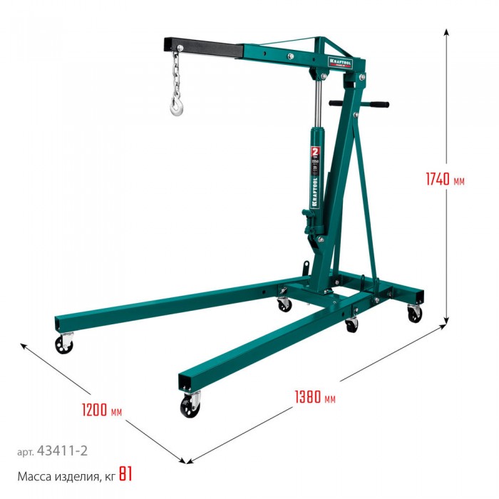Складной гидравлический кран KMG-2, 2 т, 25 - 2250 мм KRAFTOOL 43411-2
