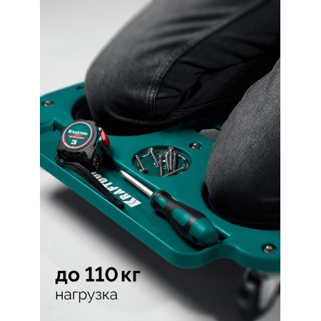 KRAFTOOL KRAFT BOARD на единой, базе, 5 колёс, лоток для инструментов, нагрузка до 110кг, строительные наколенники на колёсах (11513)