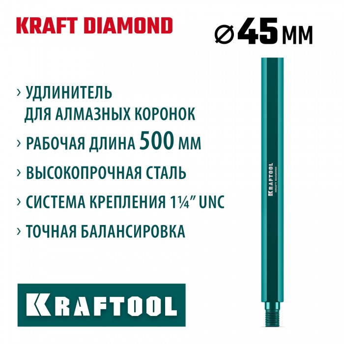 KRAFTOOL L500 мм, стальной, посадка 1 1/4?, Удлинитель для алмазных коронок (29826-500)