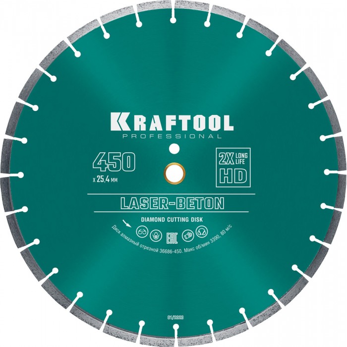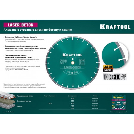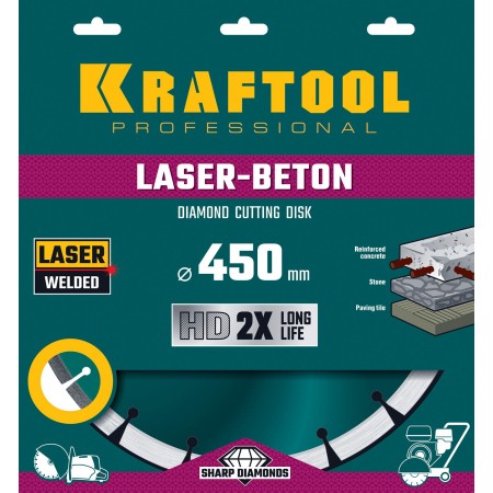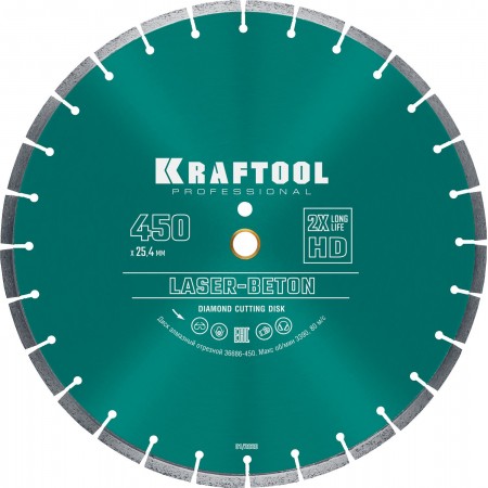 KRAFTOOL LASER-BETON 450 мм (25.4/20 мм, 10х4.0 мм), алмазный диск (36686-450)
