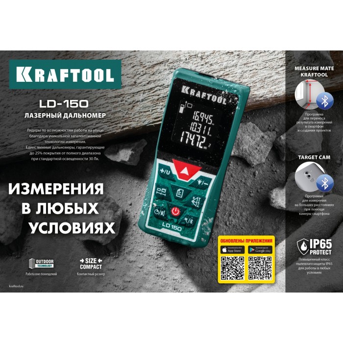KRAFTOOL LD-150, 5 см - 150 м, лазерный дальномер (34767)