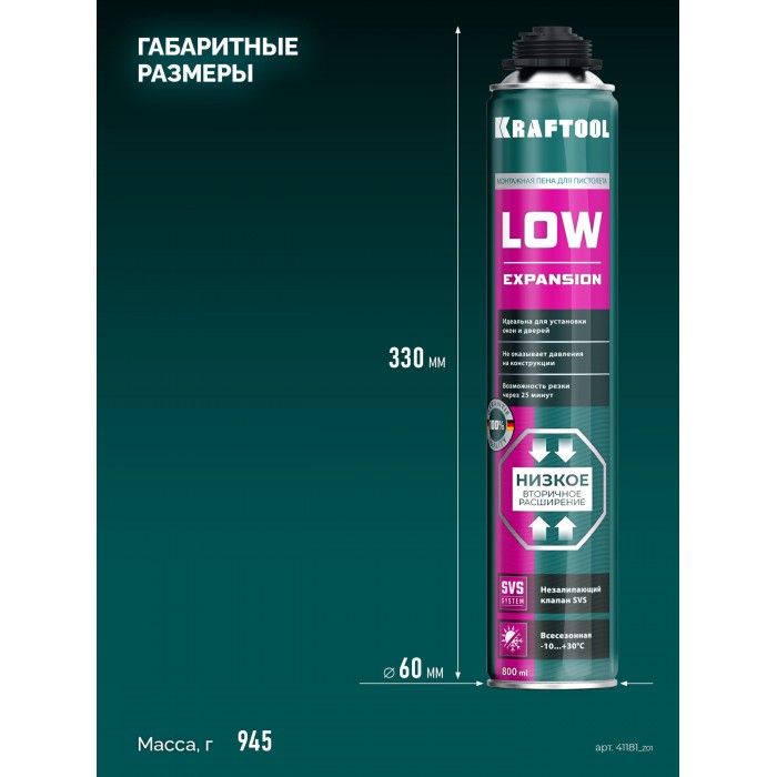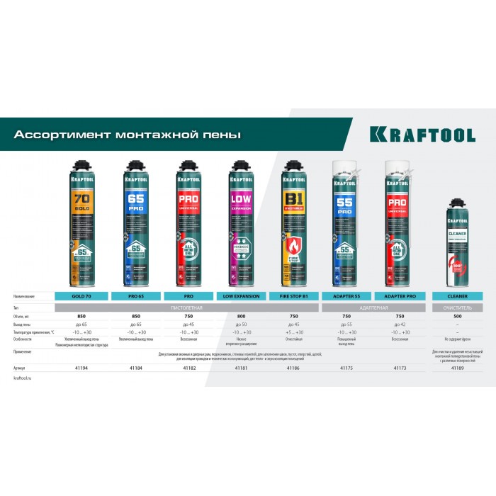 Kraftlex PRO LOW - профессиональная полиуретановая монтажная пена, отличается превосходным качеством и надежностью, которые являются результатом многолетнего опыта производства. Используется с пистолетом.