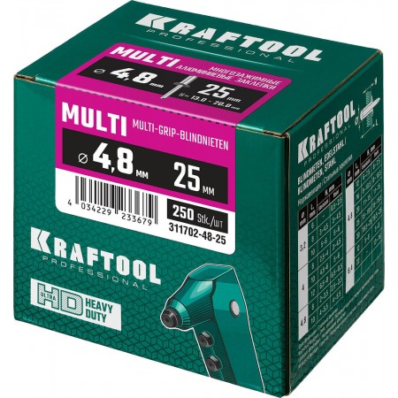 Многозажимные алюминиевые заклепки Multi (Al5052), 4.8 x 25 мм, 250 шт KRAFTOOL 311702-48-25