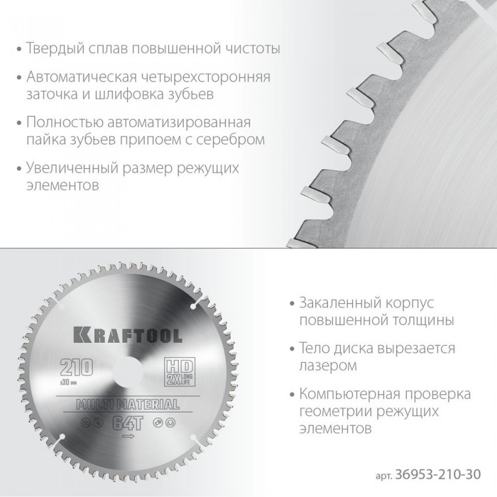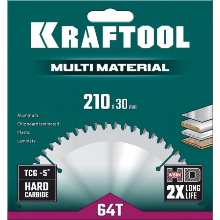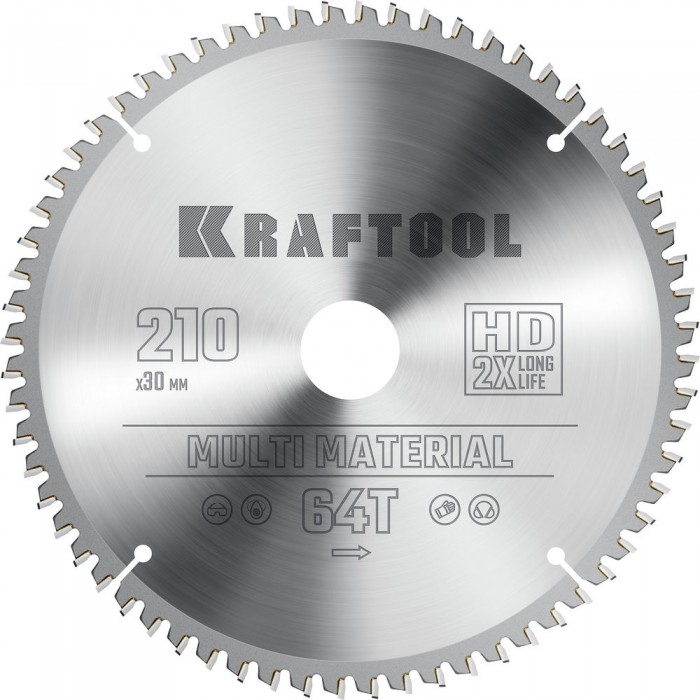 Пильный диск по алюминию Multi Material, 210 х 30 мм, 64Т KRAFTOOL 36953-210-30