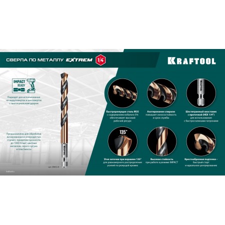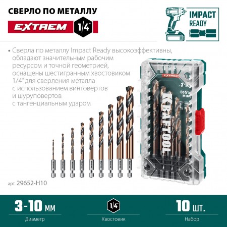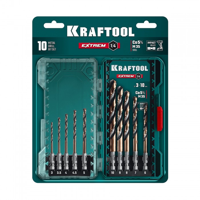 KRAFTOOL НЕХ-1/4?, 10 шт, набор сверл по металлу для винтовёртов и шуруповертов IMPACT READY (29652-H10)